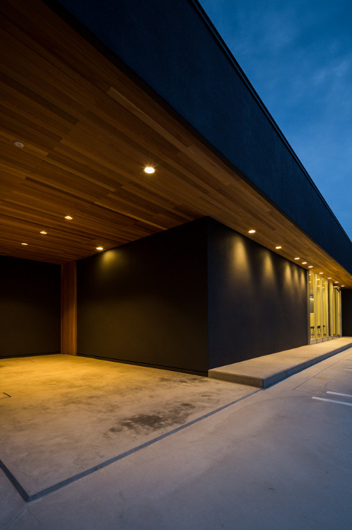 ガレージから軒を見る(夕景)。