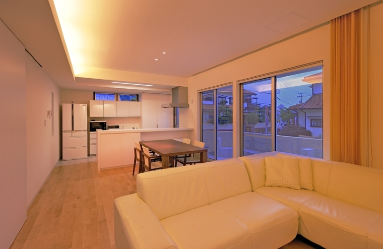 高倉台の家 リビング 夜間