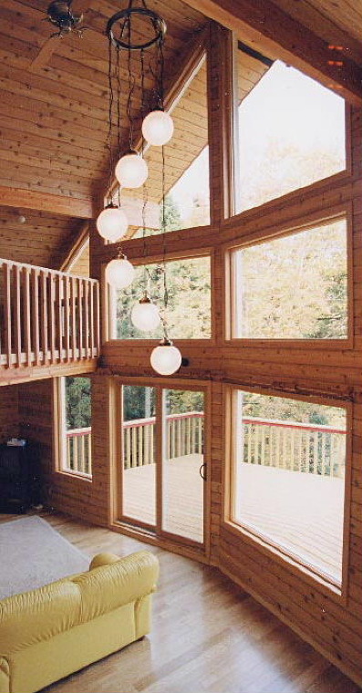 大きな窓と吹き抜けのあるリビング