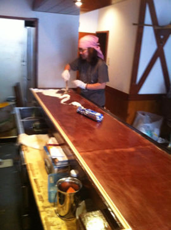 ガラスモザイクをデザイン貼り!ネーム入りバーカウンター (4) TileLife
