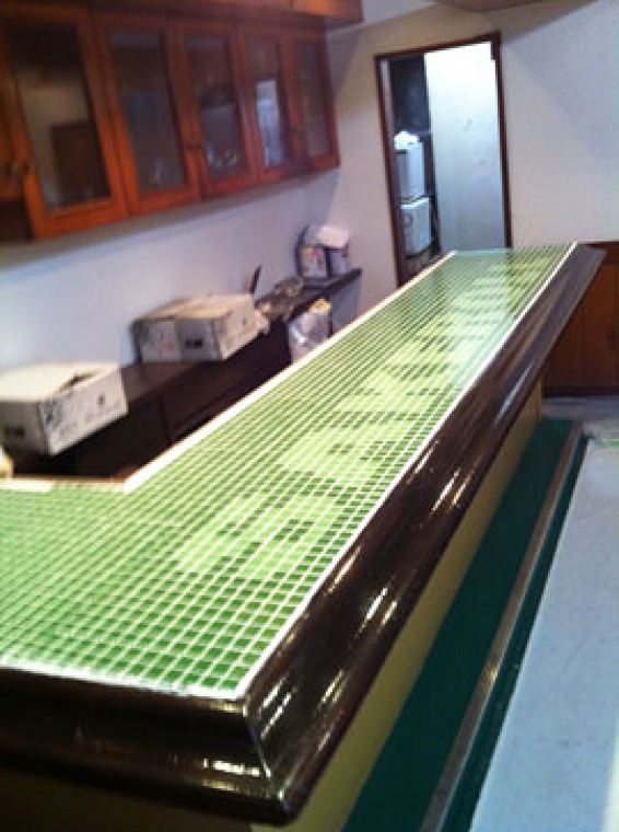 ガラスモザイクをデザイン貼り!ネーム入りバーカウンター (4) TileLife