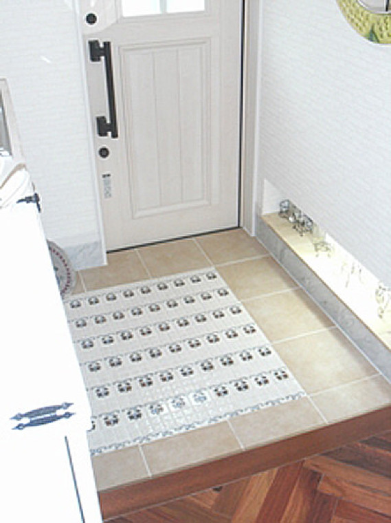 我家はここに家を建てて、3代目。初婚で45歳、妻49歳の冬でした。 結婚1年と3ヶ月目に腰を痛め自宅療養中、家の台所の下の井戸を埋めることで業者と打ち合わせする中で、大幅なリフォームをする運びとなりました。 娘のリボンは11ヶ月の女の子?(猫)です。 ローコストに抑えるために、素材感、色、デザイン、一番は価格。にひかれてタイルライフさんを捜しあてました。 どうにか予算内におさめることができて、感謝しております。 玄関は、あったかい絨毯のイメージをただよわせたくて、仕上げました。アンティークで少し、フランスとか異国を感じる空間を目標にしました。 勝手口は、家族にとっては一番出入りする場所。仕事から帰ってくる時、出かける時、車庫に近いので家族の玄関のような場所。 あえて高原のような土地に逆らって、港と海のイメージで、タイルの色とちょっと和とレトロの感じを融合させてみました。 どちらも我家のお気に入りの場所です。