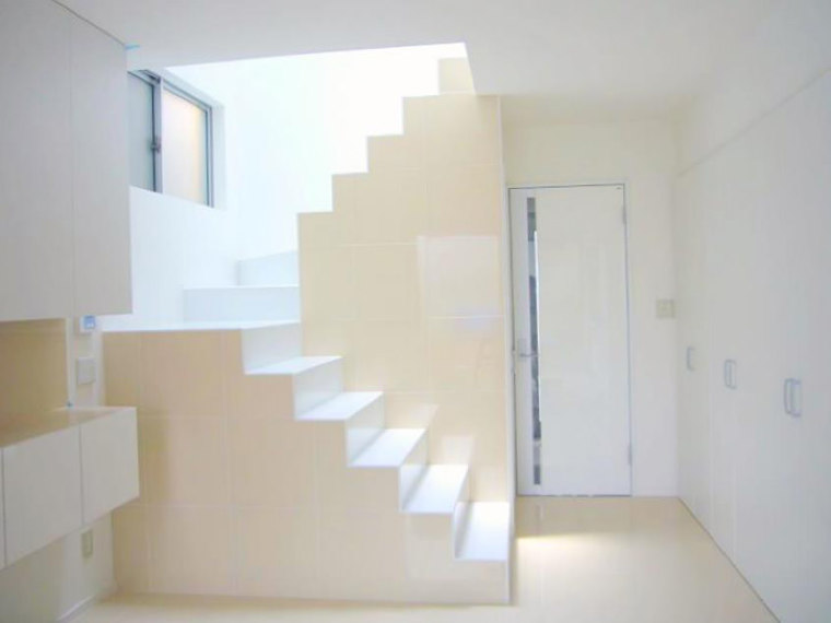 施主様が以前、イタリアにお住まいで、イタリアの生活スタイルを そのまま日本に・・・といったイメージだったので、材料集めに苦労しました。 何とか素敵に仕上がってホッとしています。オシャレで白くて生活感がない家というご注文で、木材の雰囲気がお好きではなかったので、床のタイルを階段の壁まで立ち上げて、よい雰囲気が出せたと思います。