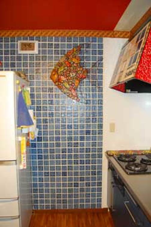 タイルに囲まれた鮮やかなキッチンスペース (5) TileLife