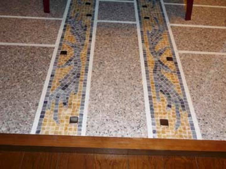 薪ストーブを引き立てる、大理石モザイクタイルの炉台 (3) TileLife