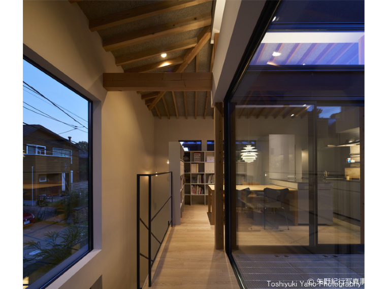 ダイニングをみる。バルコニーを介してみることで広がりを感じられる。