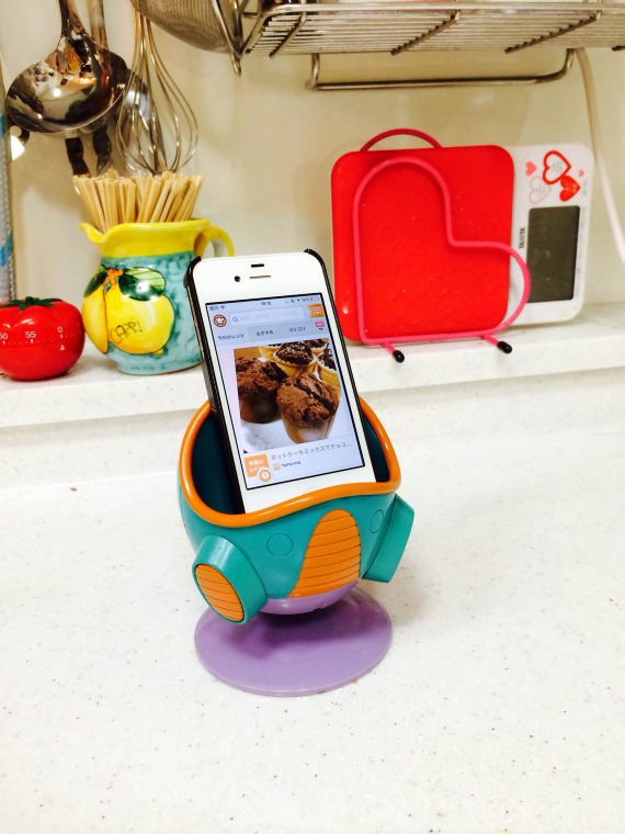 まだまだ料理初心者。レシピをじっくり読み込み、料理をしています。様々なお料理レシピのアプリがあるので、この台に置いて、両手をあけられる様にしています。 ちなみにこの台は、4年前に温泉宿に泊まった際に旅館のゲームセンターで取ったものです。『ドラゴンボール』のフリーザが乗っている物です。(笑)
