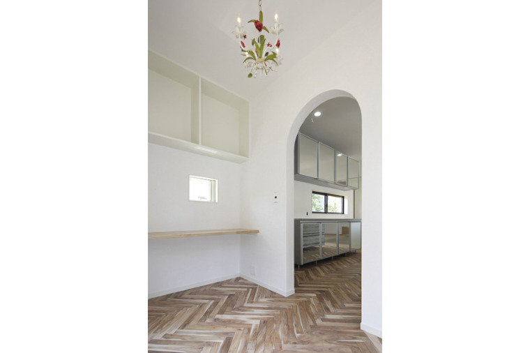 パントリー。 壁は漆喰仕上げ。
