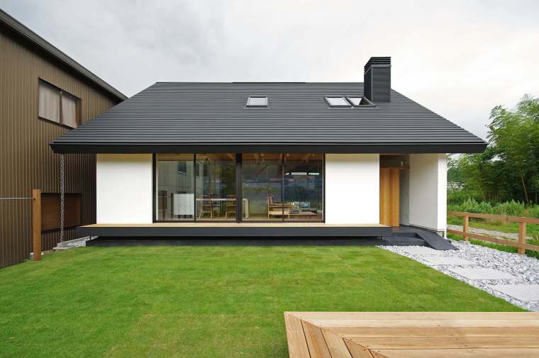 平屋のような二階建て。 大屋根の中には子供が喜ぶ、小屋裏のフリースペースがあり、天窓から星空を眺める事が出来ます。