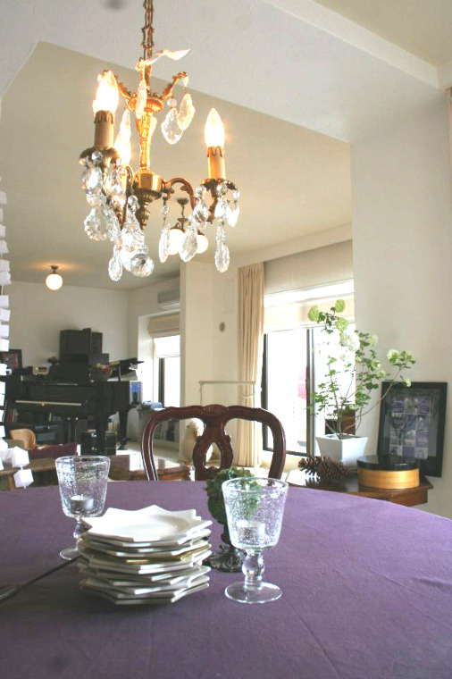 築15年のマンションを自分スタイルにリフォーム。パリのアーティストのアトリエ窓をキッチンに。ペイントだって自分流。インテリアのポイントは「小さい物を少しだけ」アンティーク家具や照明と家族の写真や自作のアート。テーブルコーディネートもこだわります。フランスのエスプリが薫るワンランク上の上質リフォーム住宅の完成です。