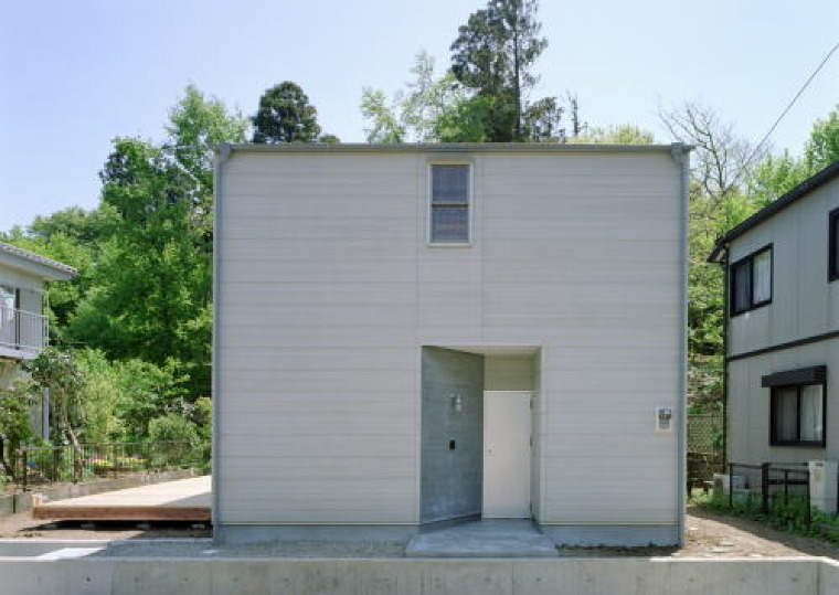 北側には道路と公園がある。環境は良いが、普段は閉じておきたいと考えた、シンプルなファサード。