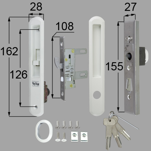 TOP > ガラス・建具金物 > 建具錠 > 錠前・鍵・キー > 引手内外錠・召合せ外錠セット(ホワイト)