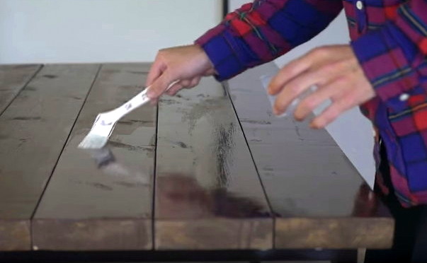 水性のステインで仕上げたマットな感じのままが良ければ、ニスの塗装は必要ありませんが、ダイニングテーブルとして使うのであれば、ニスを塗って表面を保護しても良いと思います。