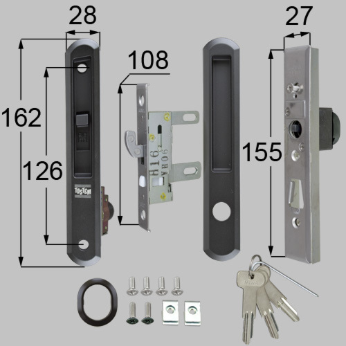 TOP > ガラス・建具金物 > 建具錠 > 錠前・鍵・キー > 引手内外錠・召合せ外錠セット(ブラック)