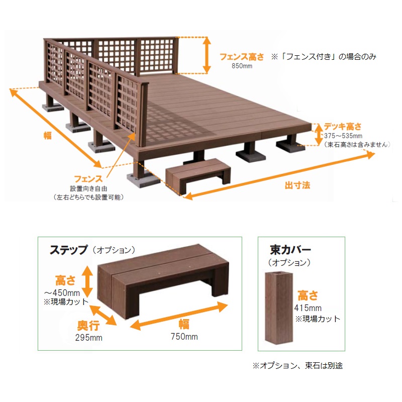 | サイズの補足 | 幅3655×出寸法2900 高さ375mm~535mm ※束石は含みません |