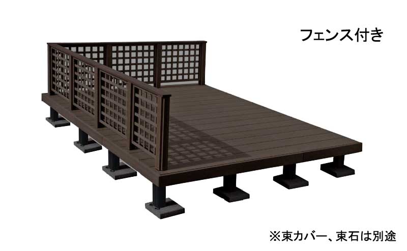 | サイズの補足 | 幅3205×出寸法2000 高さ375mm~535mm フェンス高さ850mm ※束石は含みません |