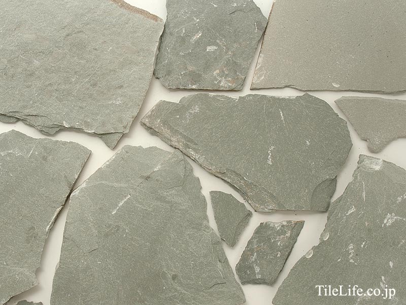 ●ケース入数は石の形を整えないで施工した場合のm2数量です。下記画像のように、石の形を整えて目地幅をつめた貼り方の場合は、20~30%程度は余分に必要となりますので、お見積り、ご注文の場合は、くれぐれもご注意くださいますようお願い致します。