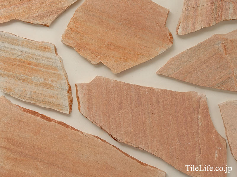 ●割り肌タイプの石材は、天然石の割れ目に沿って石を割って作るため、寸法・厚さのバラツキが大きくなります。目地幅やモルタル施工で調整しながら施工願います。