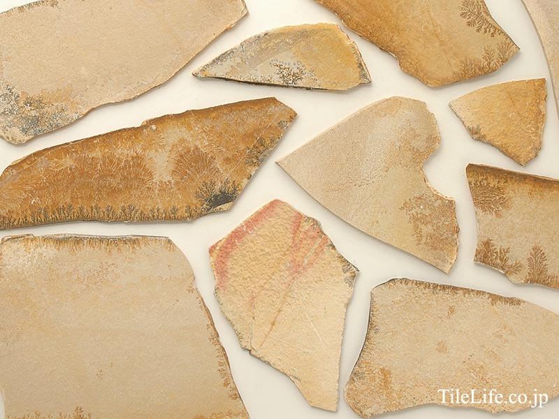●天然石は1枚ごとに色調と模様が異なるため、施工の際には、数箱を混ぜ合わせて仮並べするなどして、必ず全体のバランスを見てから貼って下さい。