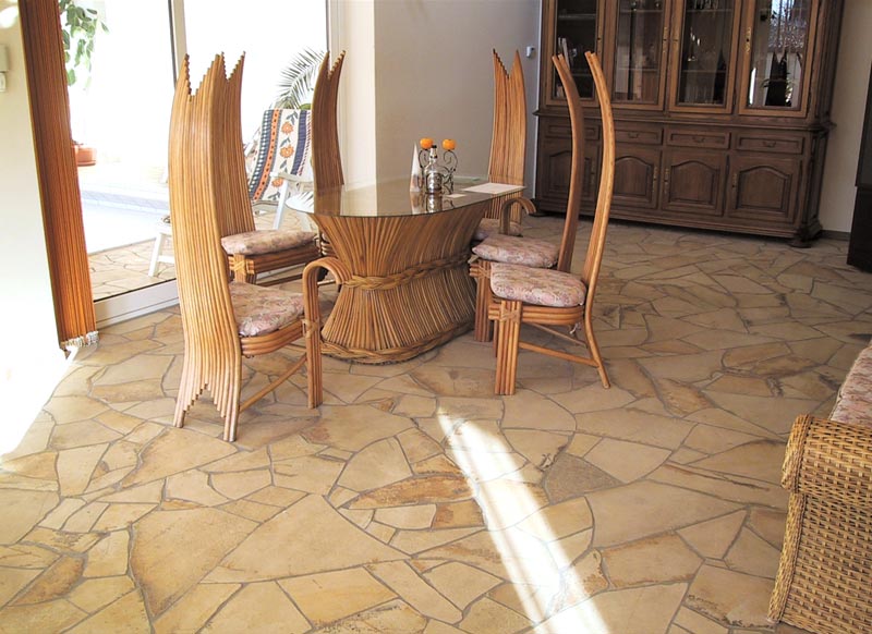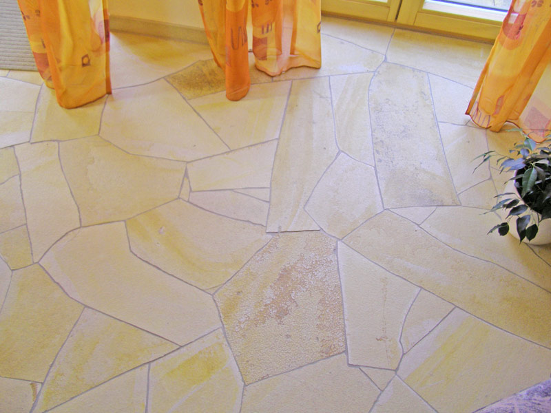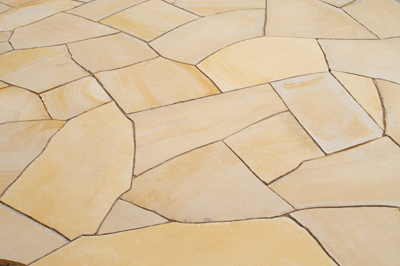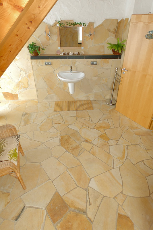 ●ケース入数は石の形を整えないで施工した場合のm2数量です。下記画像のように、石の形を整えて目地幅をつめた貼り方の場合は、20~30%程度は余分に必要となりますので、お見積り、ご注文の場合は、くれぐれもご注意くださいますようお願い致します。