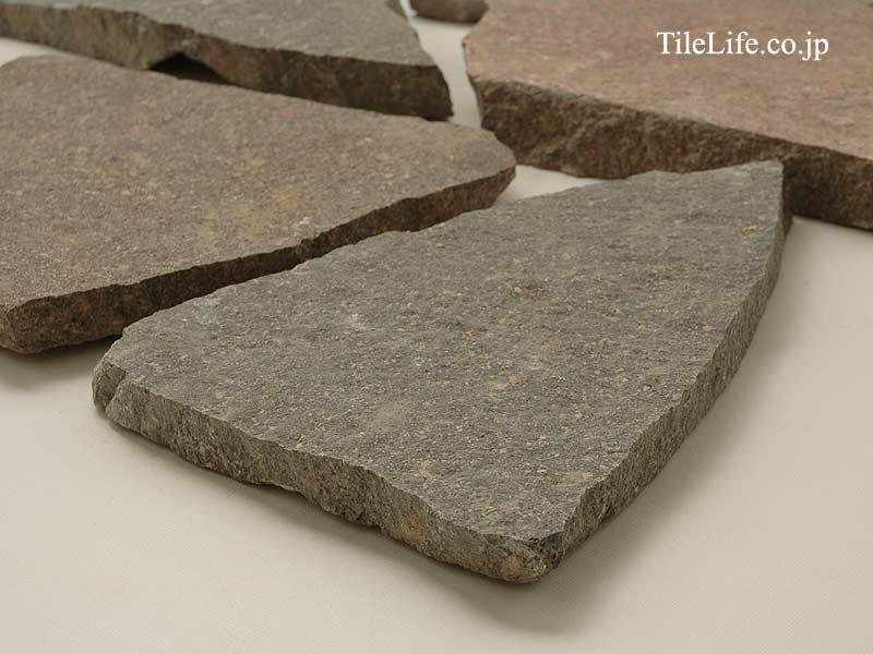 ●割り肌タイプの石材は、天然石の割れ目に沿って石を割って作るため、寸法・厚さのバラツキが大きくなります。目地幅やモルタル施工で調整しながら施工願います。