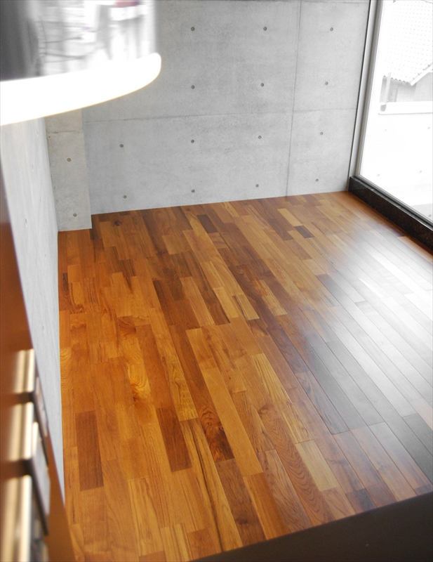 ●無垢材のため、1枚ごとに木目や色柄が異なります、施工の際には、数箱を混ぜ合わせて仮並べするなどして、必ず全体のバランスを見てから貼って下さい。