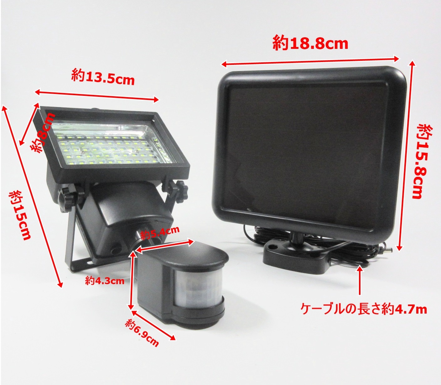 | シリーズ | ソーラー充電式 玄関灯 防犯灯 LED60個搭載 人感センサー 付き |
