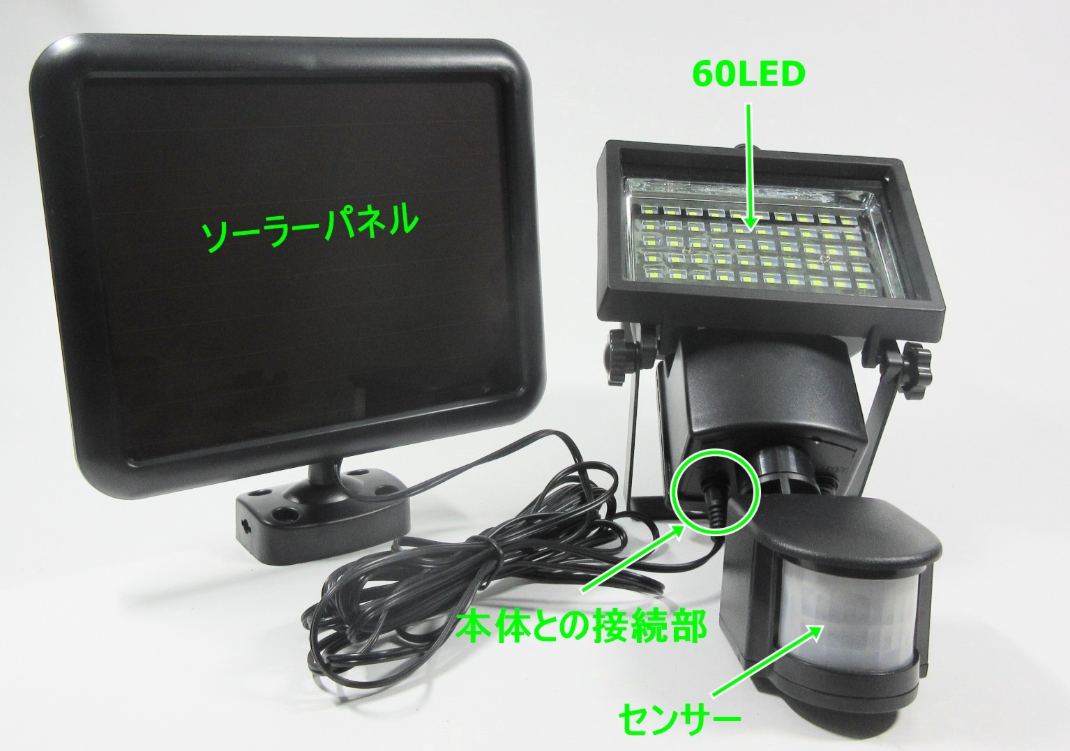 LED60個搭載の豊かな光量、人の動きを感知 して自動で照射し、防犯効果や ...