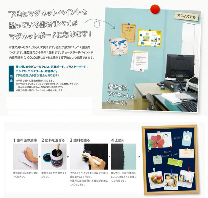 下地にマグネットペイントを塗っている部分すべてがマグネットボードになります!