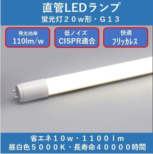 直管LEDランプ(25本セット)口金G13形、5000K、高効率・低ノイズ・フリッカレス。                                                    高効率・安全安心の直管LEDランプをお求めやすい価格でご提供いたします!