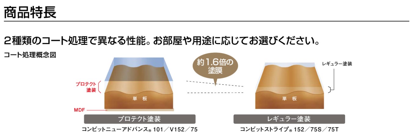 ●ディープブラウン色等の濃色系のフローリングは、光やワックス等の艶の影響で傷が目立ちやすくなる場合がありますのでご了承ください。