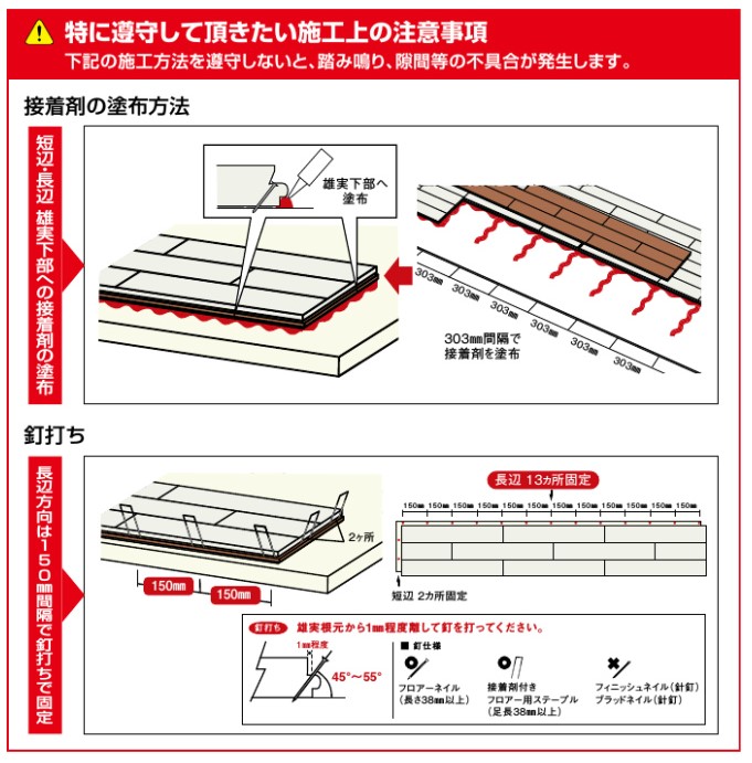 ●ディープブラウン色等の濃色系のフローリングは、光やワックス等の艶の影響で傷が目立ちやすくなる場合がありますのでご了承ください。