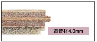 ●遮音性能を高めるために、裏側に特殊クッション材を使用しています。歩いた時の柔らかく沈むような感じは遮音性能を得るため、やむを得ない現象です。