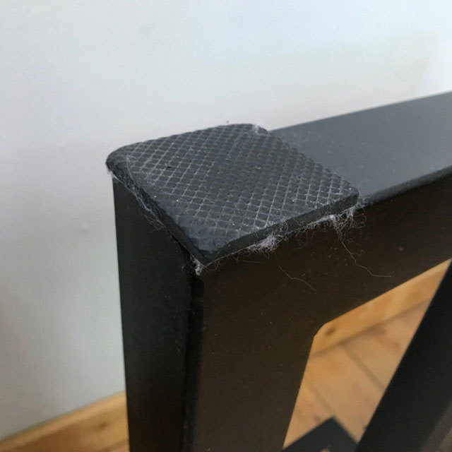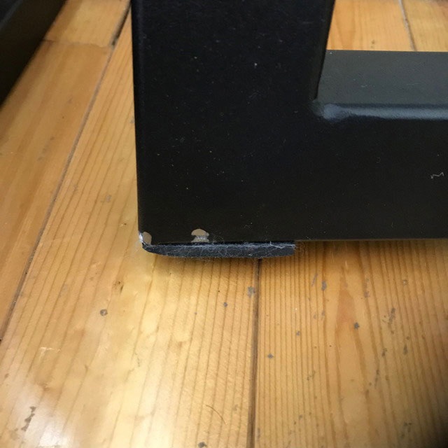 床設置面にキズ防止のクッションが付いておりますが、スチールとクッションの間に綿のような繊維が入り込んでおります。(画像参照)